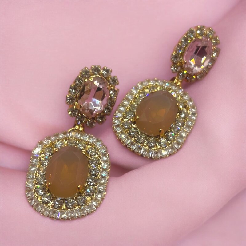 Orecchino realizzato a mano in metallo con applicazioni strass, targhetta Gilla