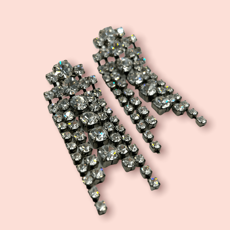 Orecchino realizzato a mano con cascata strass in ottone. Colorazione canna di fucile